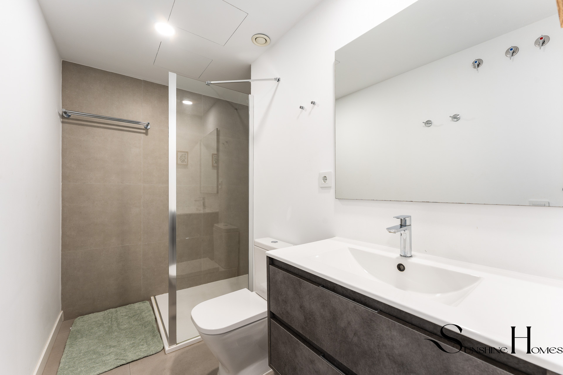 El dormitorio principal ofrece un baño privado para mayor privacidad y comodidad, junto con otra ventana Velux. Despierta a los suaves rayos del sol que entran por la ventana, señalando el inicio de otro día de aventuras en la Costa del Sol.