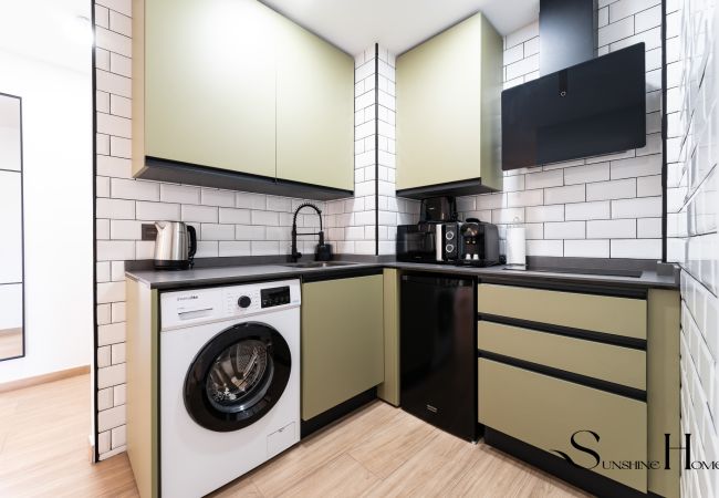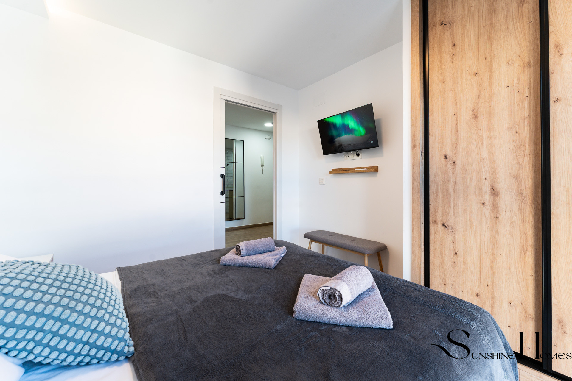 El apartamento está diseñado cuidadosamente con muebles modernos y elegantes que crean un ambiente relajante y acogedor. La zona de estar cuenta con un sofá cama cómodo, lo que permite que el apartamento aloje hasta 4 huéspedes, siendo ideal para parejas o familias pequeñas. El dormitorio ofrece una acogedora cama doble para noches tranquilas, mientras que la cocina totalmente equipada tiene todo lo que necesita para preparar comidas durante su estancia.