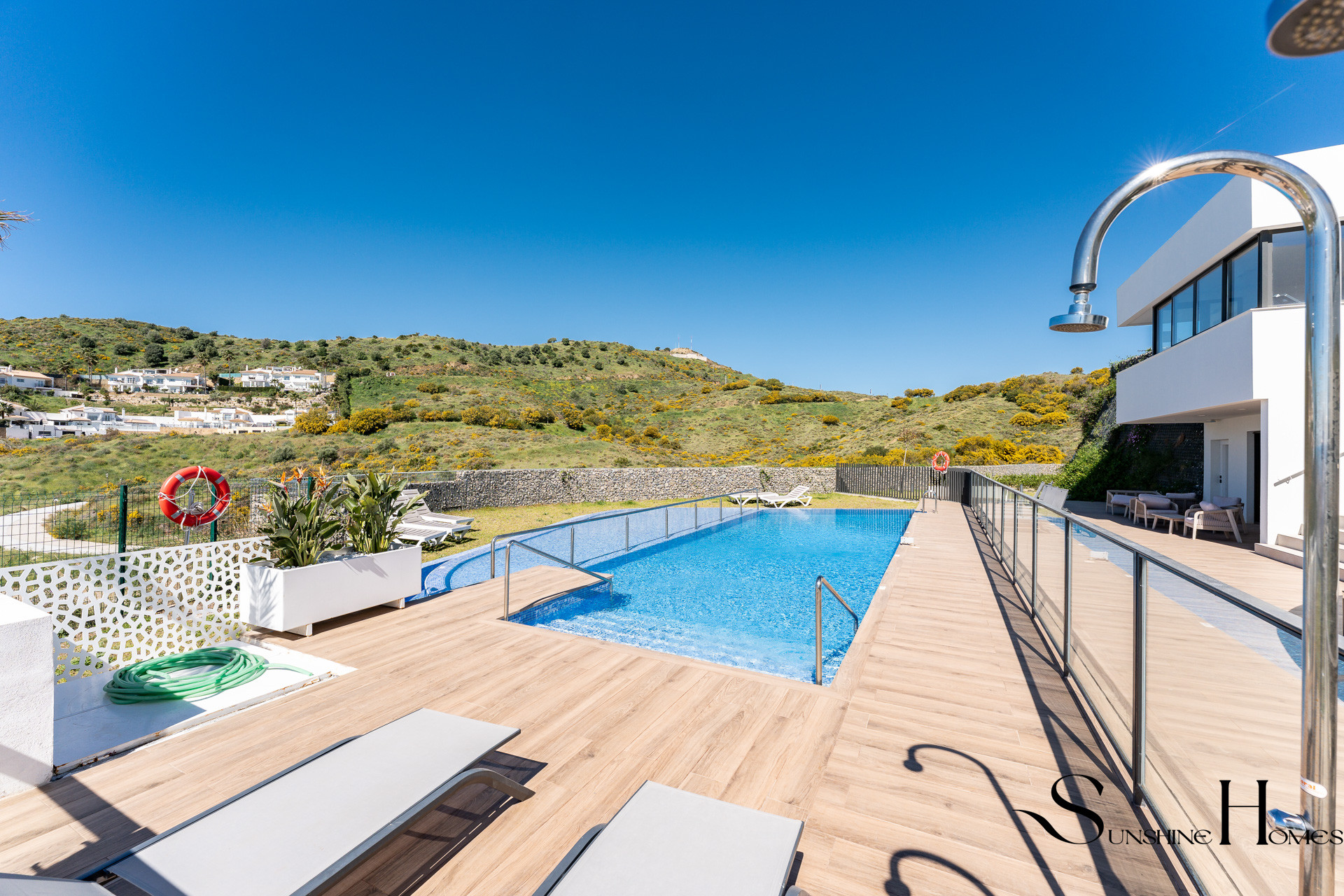 Ubicada dentro de una finca segura y vallada, la villa proporciona dos espacios de aparcamiento privado para su comodidad. Los residentes también disfrutan de acceso a una piscina infinita comunitaria con cautivadoras vistas al mar y una zona de coworking dedicada – perfecta para nómadas digitales o huéspedes que buscan combinar productividad con sus vacaciones🏖️ Max Beach está a solo 3 km (aproximadamente 7 minutos en coche), y el Campo de Golf Calanova está a 1,5 km de distancia, lo que convierte esto en una base fantástica para explorar la Costa del Sol.