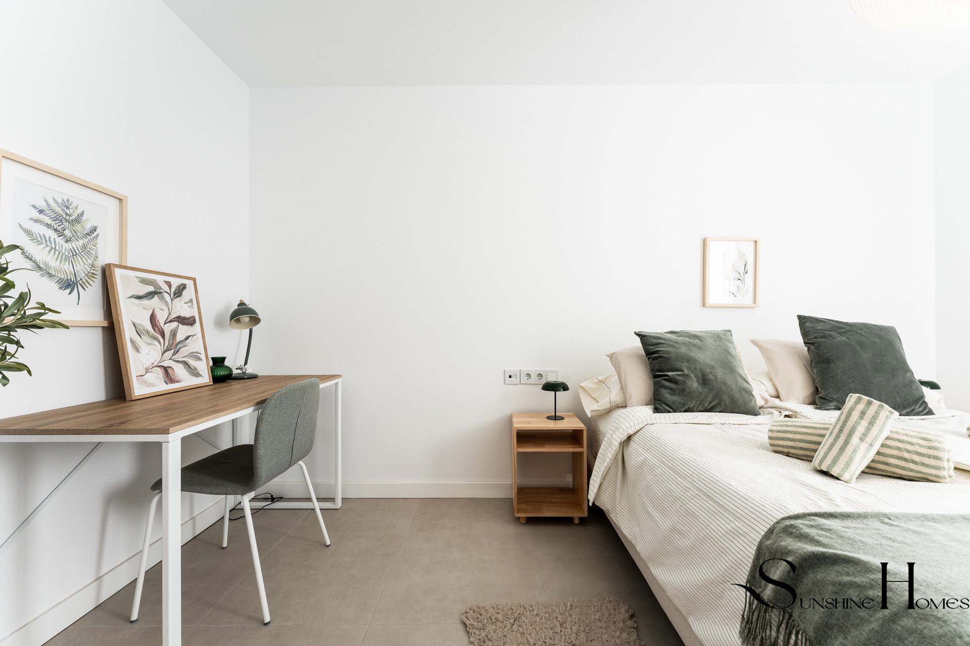 La chambre principale dispose de sa propre salle de bains attenante pour plus d'intimité et de commodité, ainsi que d'une autre fenêtre Velux. Réveillez-vous aux doux rayons du soleil qui filtrent à travers la fenêtre, prêts à embrasser une autre journée d'aventures sur la Costa del Sol.