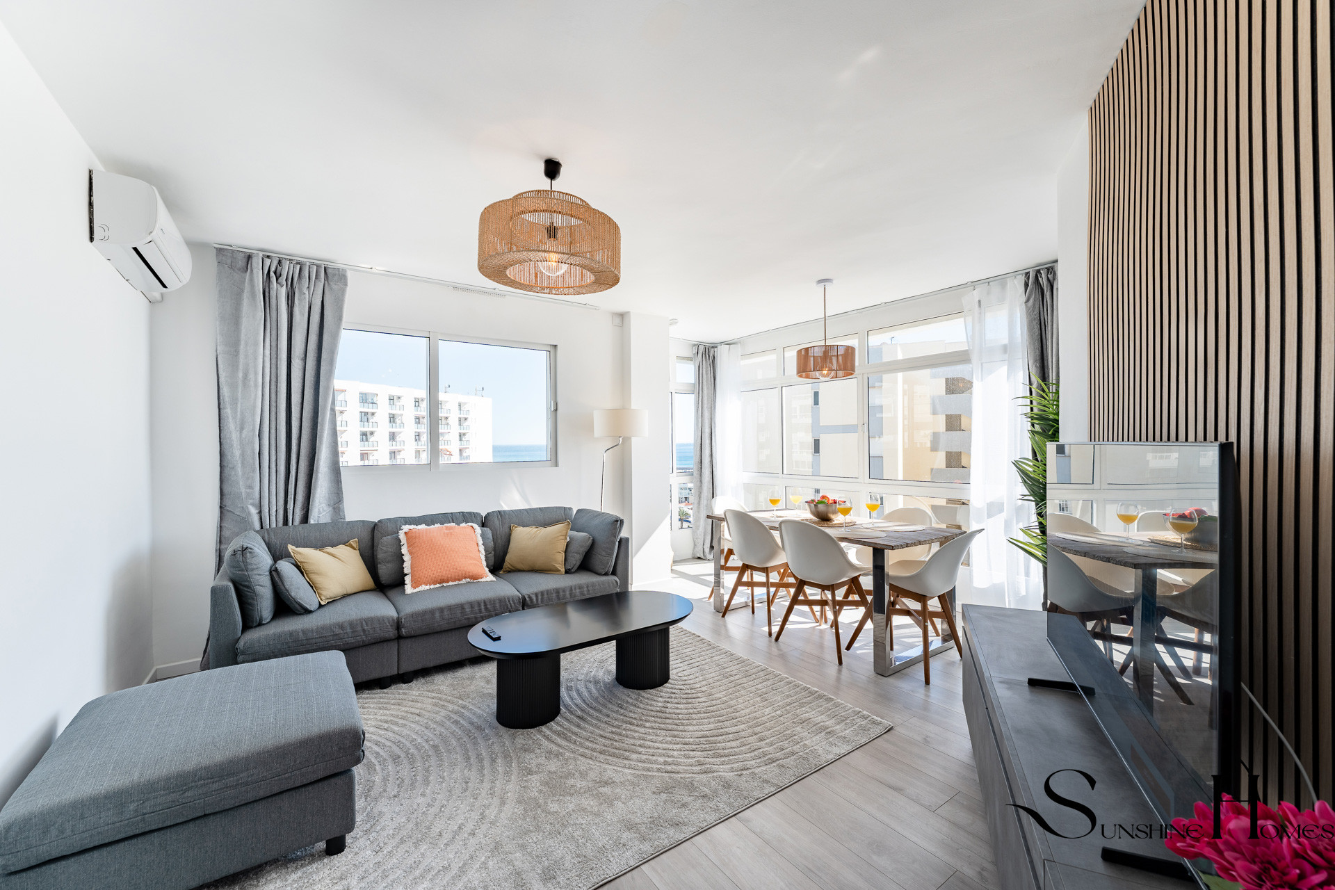 Welcome to your perfect coastal getaway in Benalmádena. This stylishly renovated 3-bedroom apartment, located on the 8th floor, offers breathtaking sea and mountain views that you can enjoy from the private balcony — ideal for morning coffee or sunset drinks.