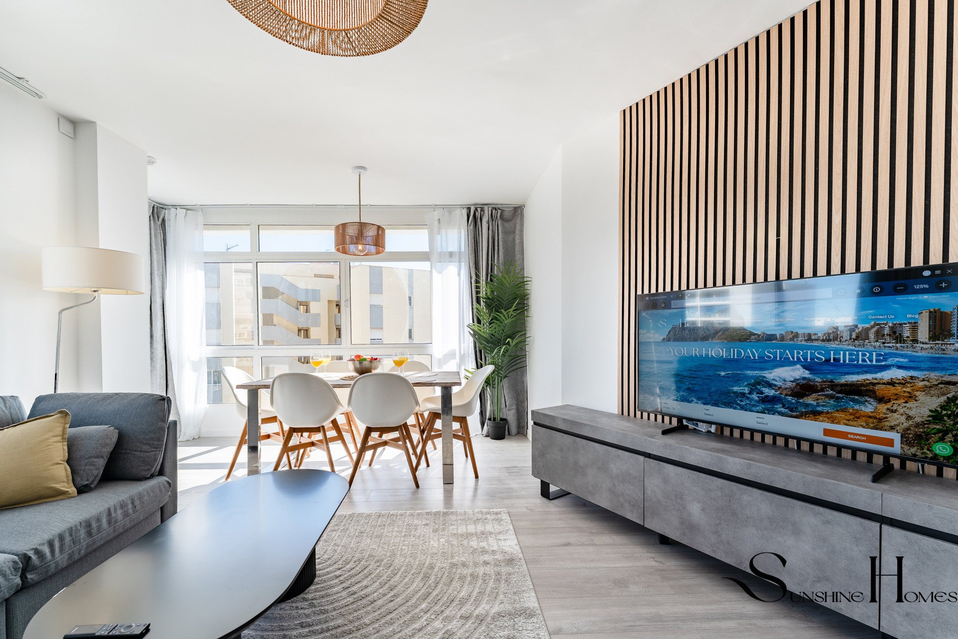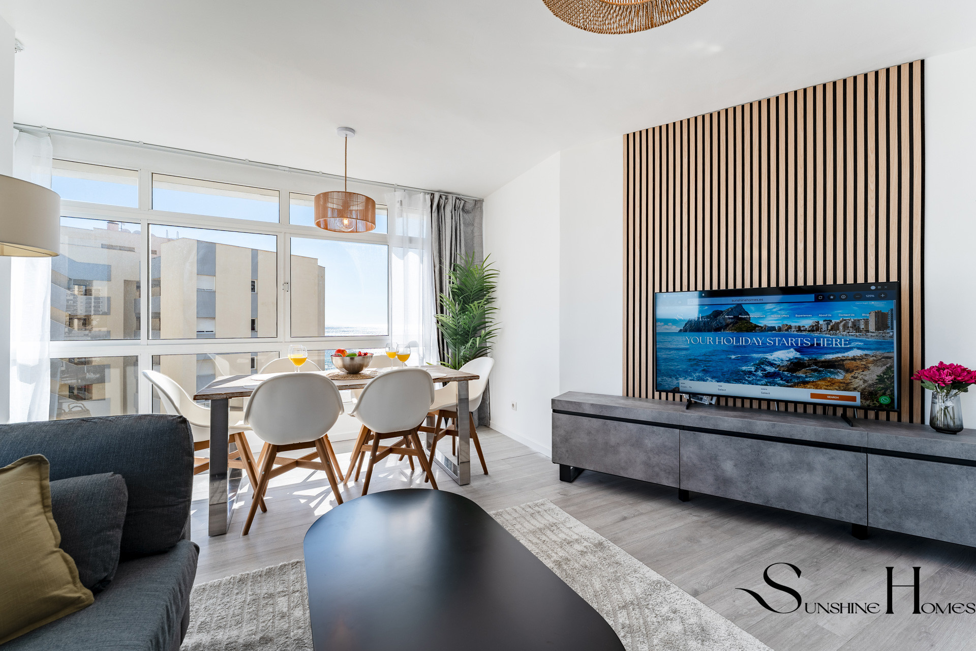 The living area is bright, modern, and welcoming, furnished with comfort in mind. Relax after a day at the beach with the Smart TV, stay connected with fast Wi-Fi, or prepare meals in the fully equipped kitchen, which includes everything you need for both short and longer stays.