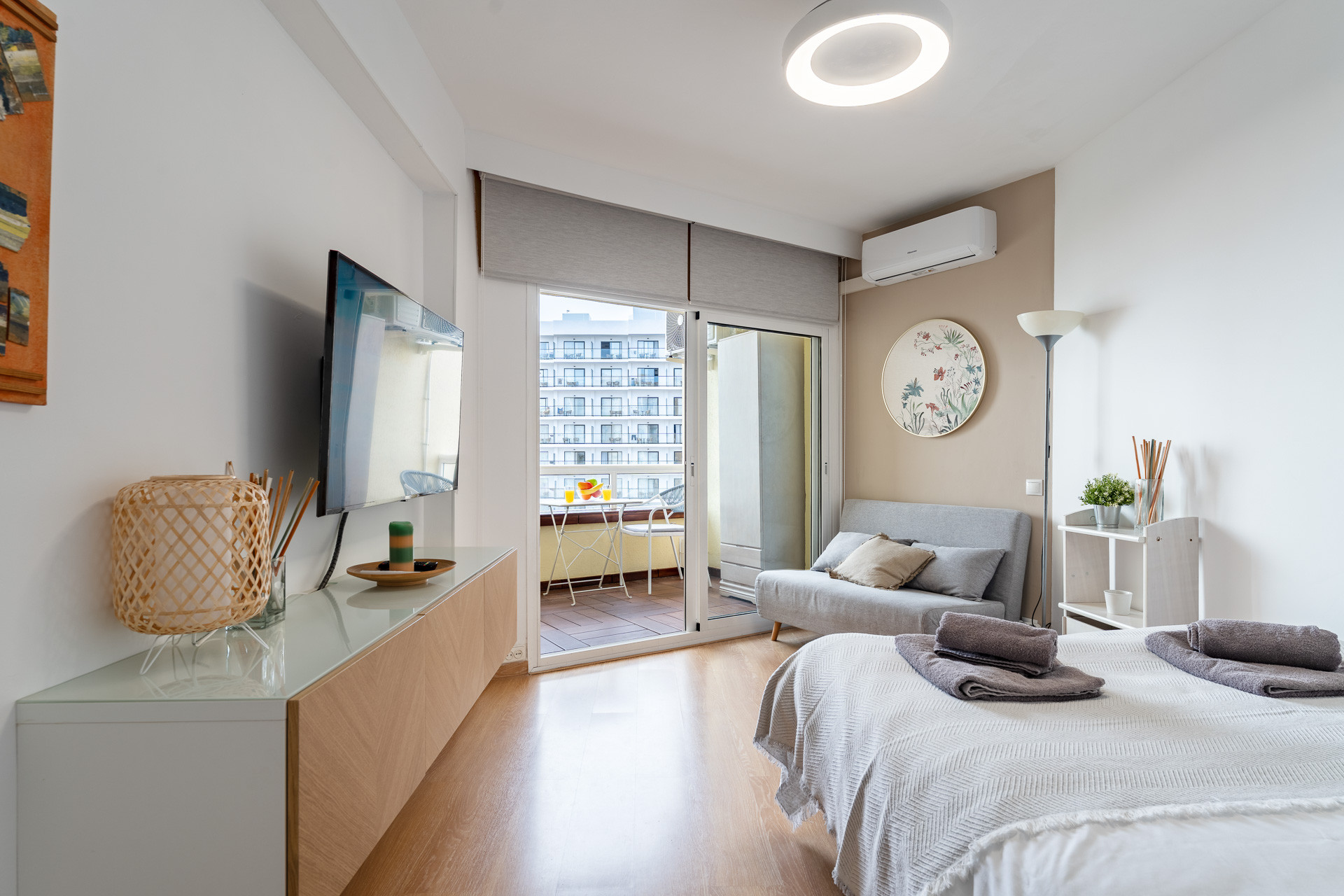 Inside, you’ll find fast WiFi, a Smart TV, and a bright, open-plan living space. The modern bathroom features a walk-in shower, adding a touch of comfort after a sunny day at the beach. The studio is well-equipped to ensure a smooth and enjoyable stay, whether you’re here for a short getaway or a longer escape.